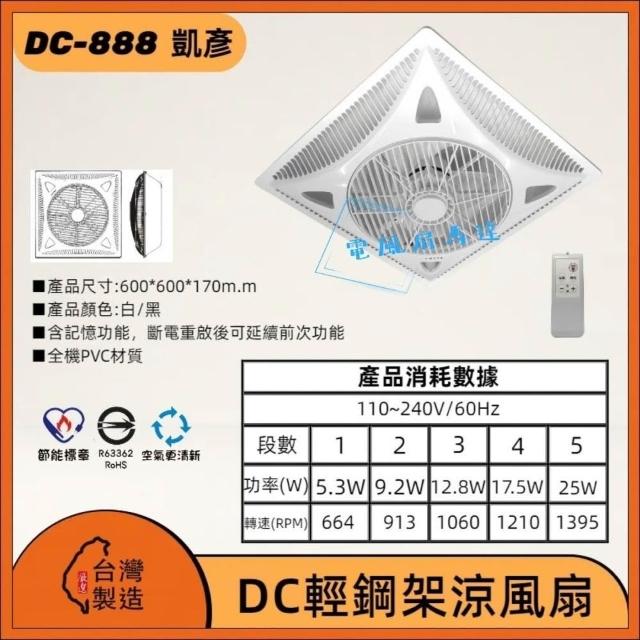 凱彥牌16吋 DC-888 輕鋼架循環扇 DC循環扇 轉盤可轉可停 全電壓省電 台灣製造 辦公室節能扇 天花板循環扇