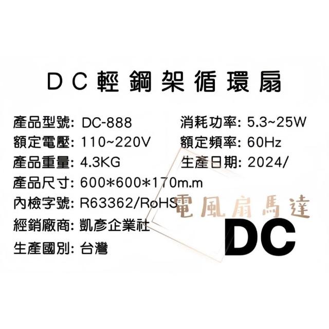 凱彥牌16吋 DC-888 輕鋼架循環扇 DC循環扇 轉盤可轉可停 全電壓省電 台灣製造 辦公室節能扇 天花板循環扇