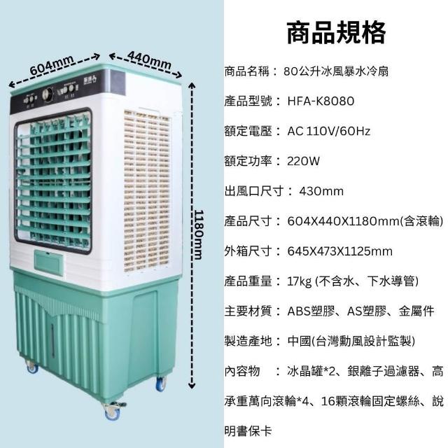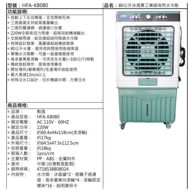 勳風勳風 80公升 商用水冷扇 HFA-K8080 冰風暴 工業級 80L 冰冷扇 三面進風 小吃店面 活動會場 居家 辦公