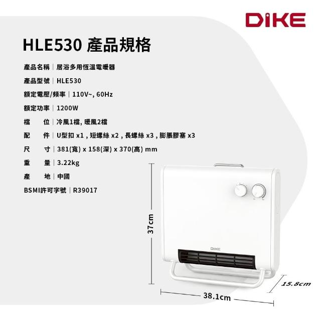 DIKEDIKE保固二年 居浴多用恆溫電暖器 HLE530WT冬天禦寒抗寒神器 小資首選 寒流救星 浴室取暖機 電暖爐 電暖器