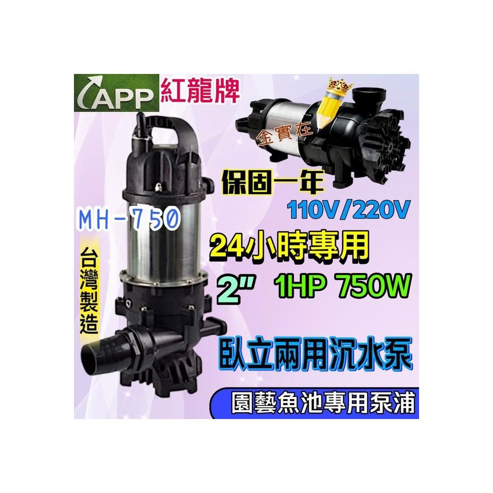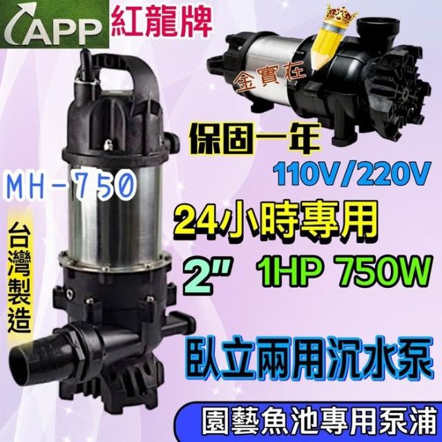 紅龍牌 APP 園藝魚池專用泵浦 MH-750 24小時運轉 景觀造景 長時間 臥立兩用沉水泵 24H抽水 2" 抽水機