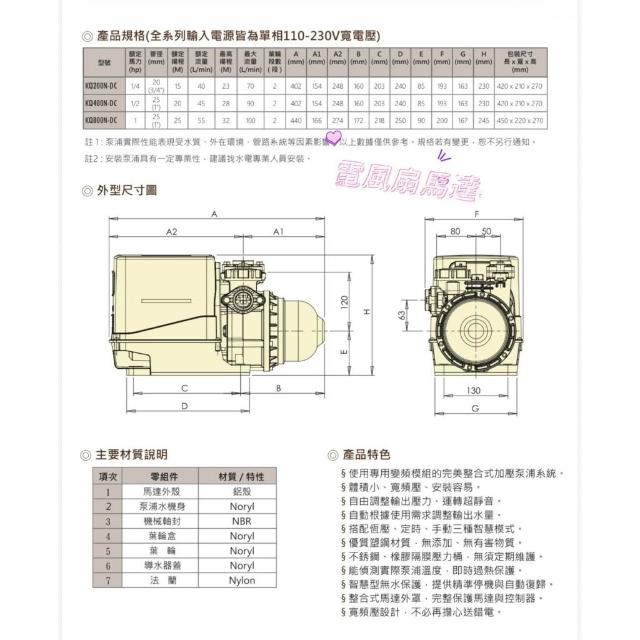 木川 永磁變頻恆壓泵浦KQ200NDC KQ400NDC 恆壓泵浦 無刷馬達泵浦 加壓泵浦 家用加壓馬達 靜音泵永磁無刷