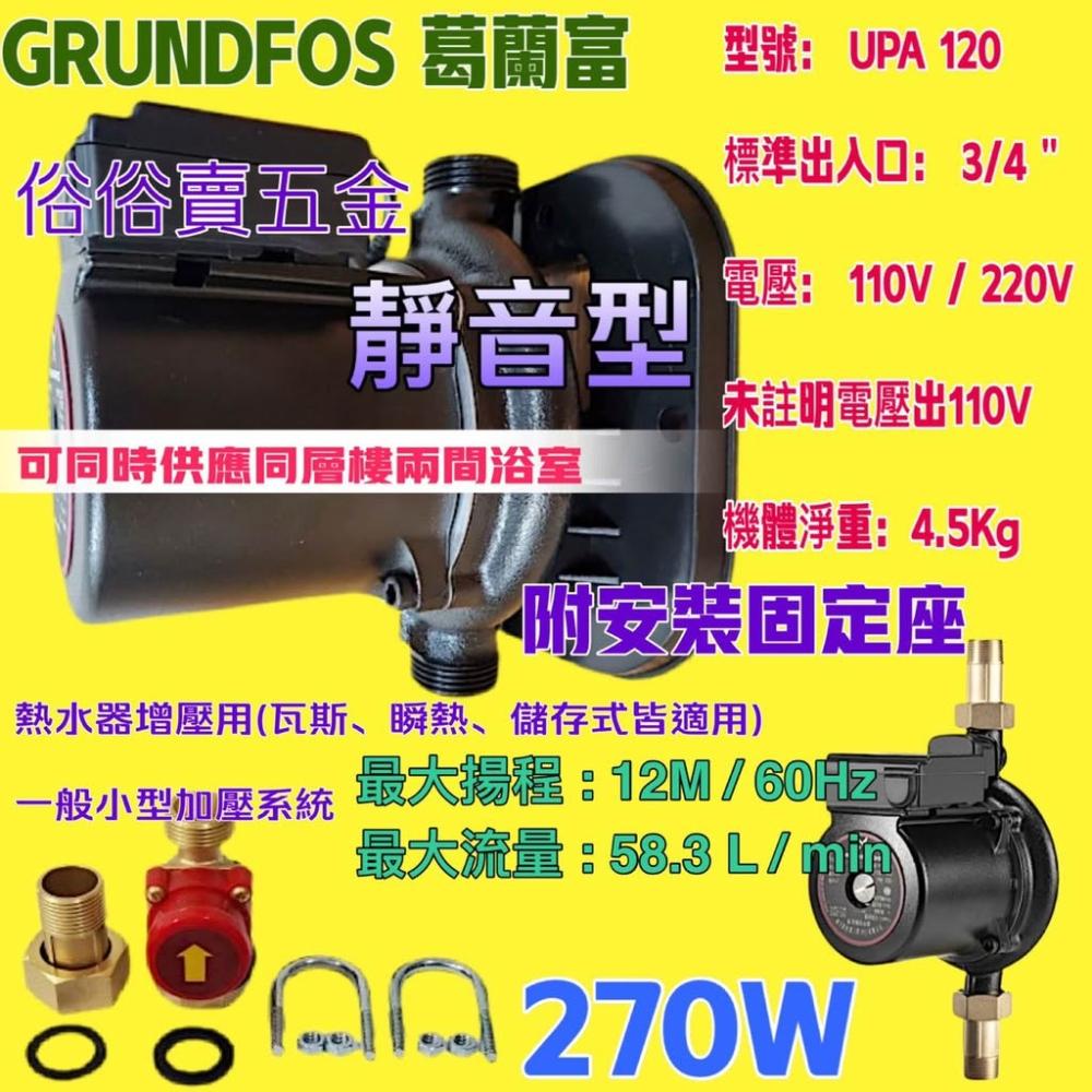 GRUNDFOS葛蘭富UPA-120 熱水器專用加壓馬達穩壓機 215W 加壓馬達 附底座 接頭 熱水器用大型加壓馬達