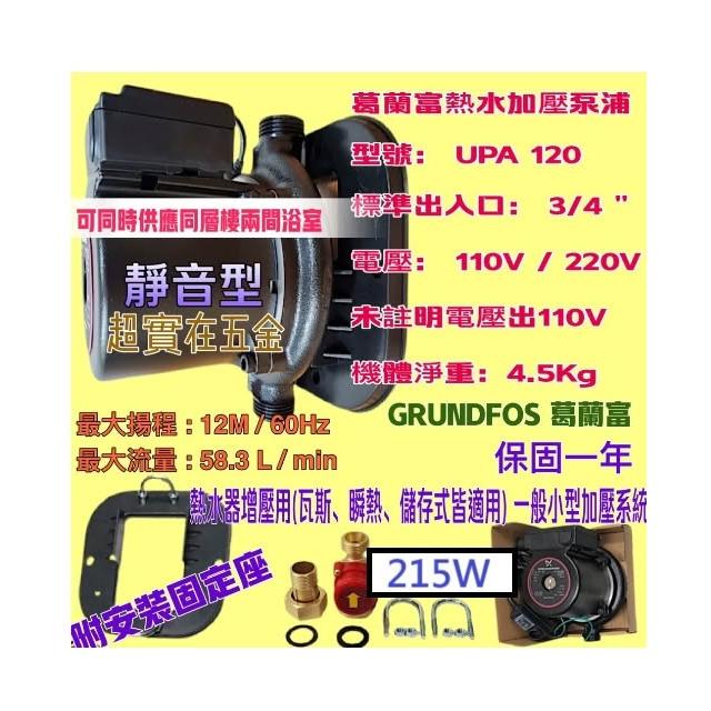 GRUNDFOS葛蘭富UPA-120 熱水器專用加壓馬達穩壓機 215W 加壓馬達 附底座 接頭 熱水器用大型加壓馬達