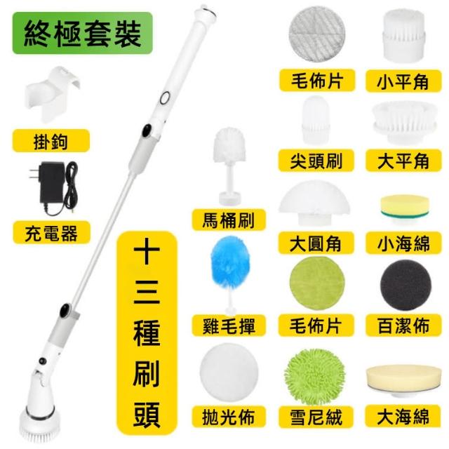 電動清潔刷 110V充電 十三刷頭任意選+防水機身+超轉清潔 無線電動清潔刷 電動刷 刷地機 電動拖把