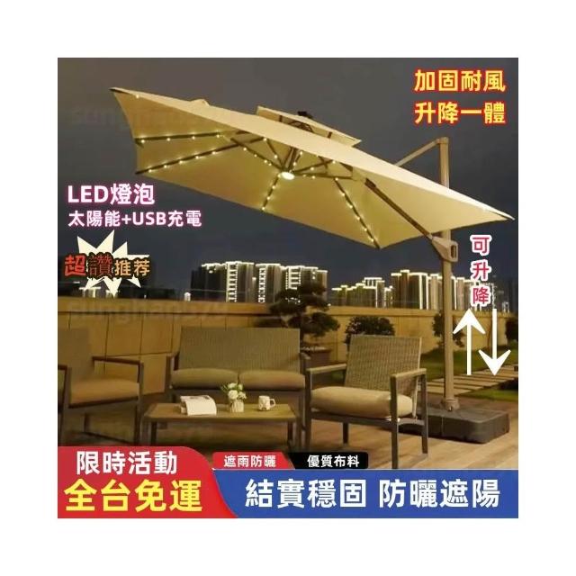 台灣免運🔥戶外庭院遮陽傘 太陽能羅馬傘 商用 家用 花園 陽台 LED別墅洋房傘 奶茶店遮陽傘 餐廳 遮陽傘