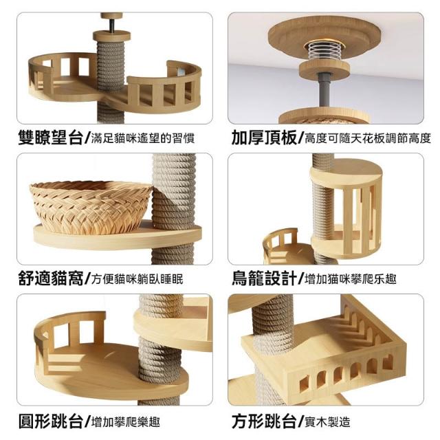 貓跳臺頂天立地 通天柱貓跳台 木質貓跳臺 貓窩 貓抓板 大型貓跳臺 貓太空艙 貓爬架 貓抓柱 貓跳臺