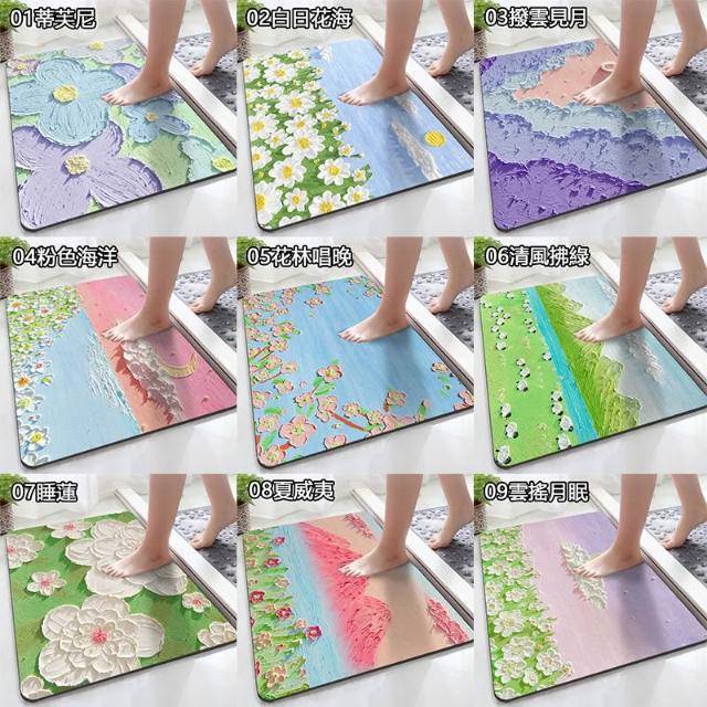3D立體印花腳踏墊 衛浴室腳踏墊 硅藻泥軟墊 吸水地墊 硅藻軟墊 浴室防滑墊 止滑墊 衛浴地墊 入門墊