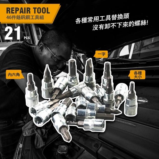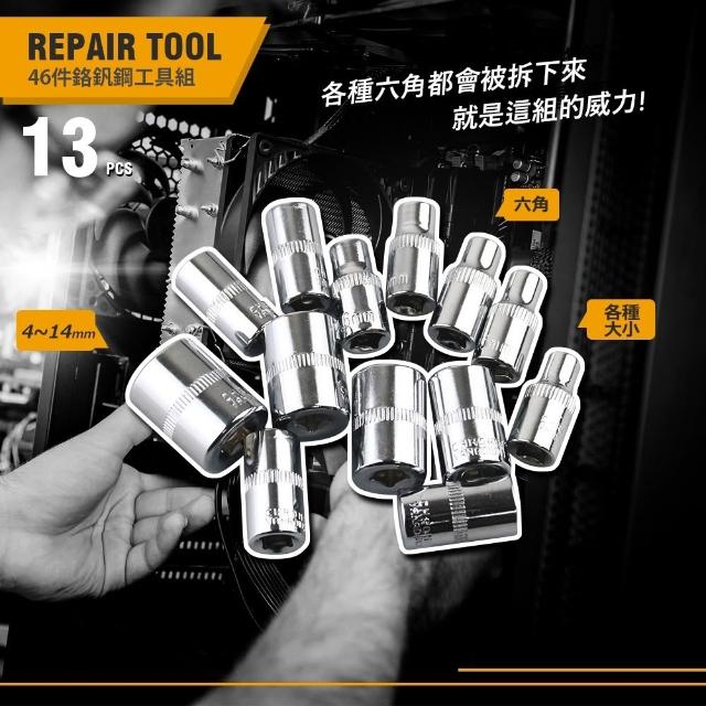 46件套工具箱 扳手套筒 2分扳手套筒 棘輪扳手 專業工具組(六角套筒 六角扳手 機車工具 套筒組 螺絲起子)