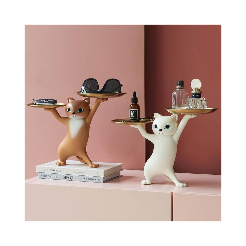 妖嬈貓托盤擺件 玄關擺件(交換禮物 新年禮物 貓咪擺飾 喬遷禮物 貓咪托盤 鑰匙收納架 飾品盤)