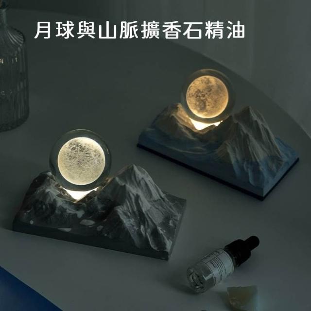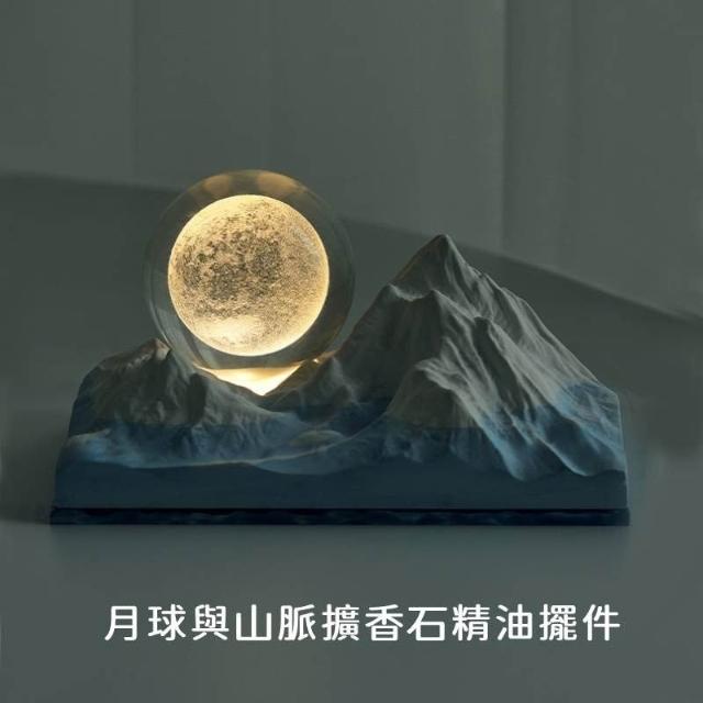 月球與山脈擴香石 精油擺件 月球山香薰擺件(香薰夜燈禮盒 水晶球擴香石 水晶球夜燈 香薰小夜燈)