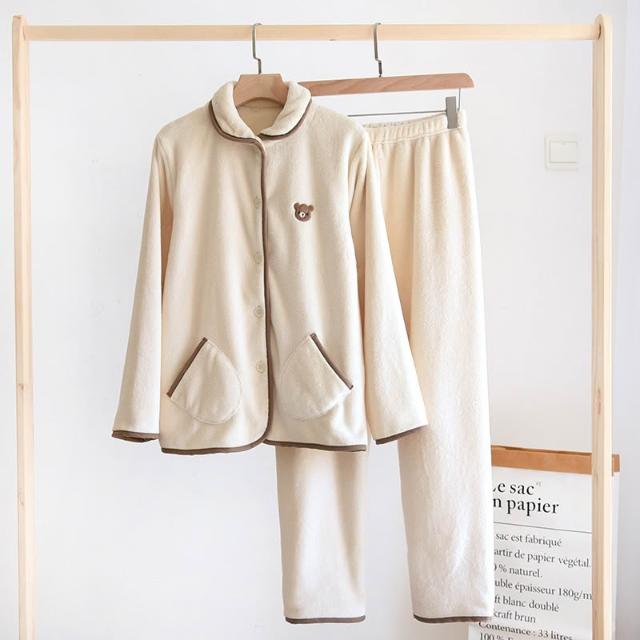 小熊法蘭絨睡衣 睡衣 冬天睡衣 睡衣冬天 睡衣套裝 珊瑚絨 居家衣服