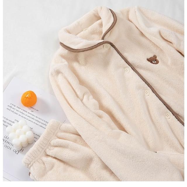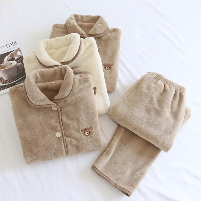 小熊法蘭絨睡衣 睡衣 冬天睡衣 睡衣冬天 睡衣套裝 珊瑚絨 居家衣服