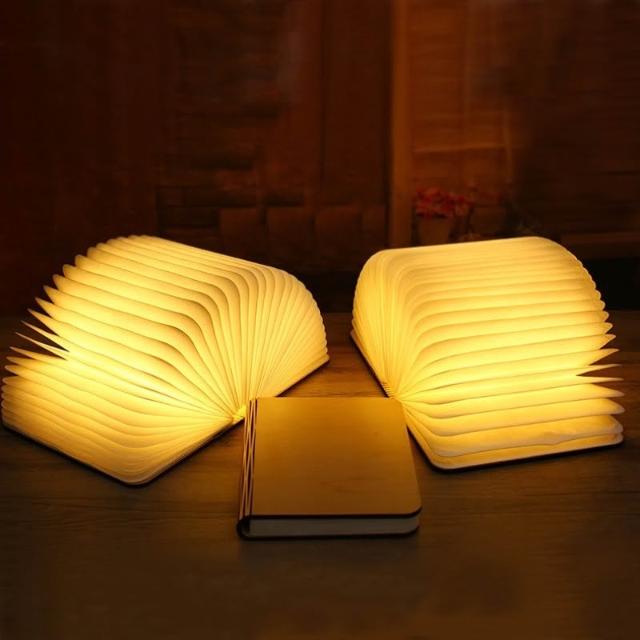 創意摺疊書本燈 木質發光書本燈 摺疊LED書燈 LED燈 觸摸發光 充電小夜燈 造型燈 七彩氛圍燈 夜燈發光書 生日禮物