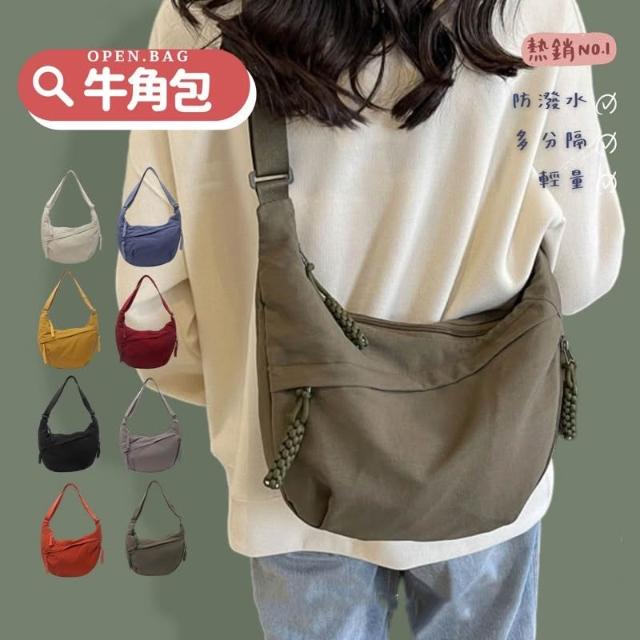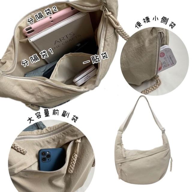 輕柔牛角包 側背包 餃子包 斜挎包包(簡約大容量 日系高級)