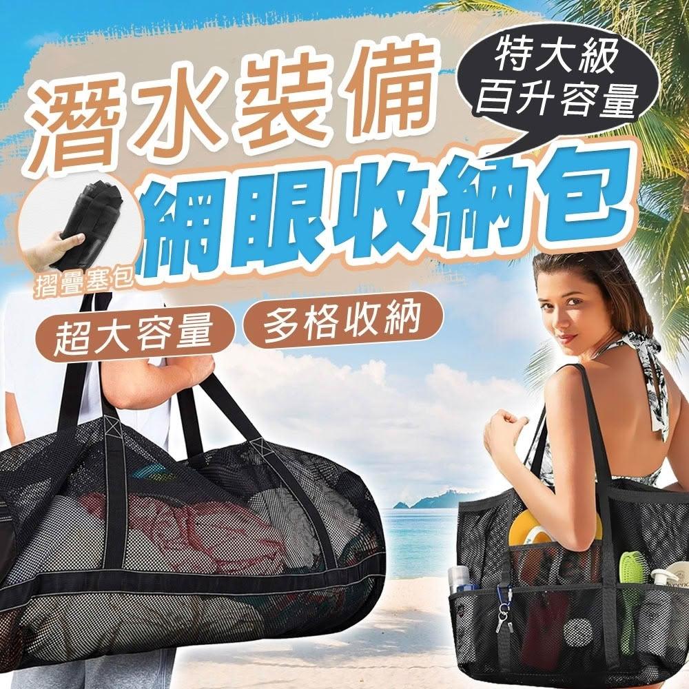 網眼沙灘包 手提款 潛水背帶款 輕鬆整套帶著走 旅行包 沙灘袋 網袋 洗漱袋
