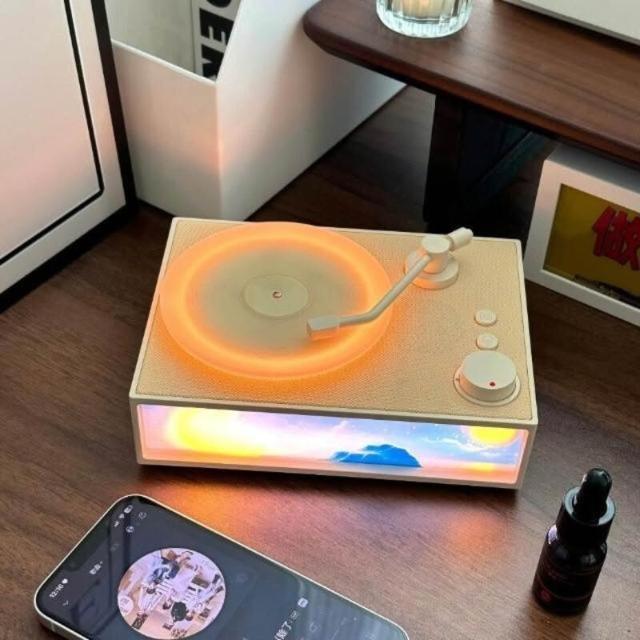 奶黃復古香薰音箱氛圍燈 香薰燈光畫 香氛氛圍燈 療癒時光 儀式感好物 黑膠音箱 夜光燈 交換禮物 生日禮物