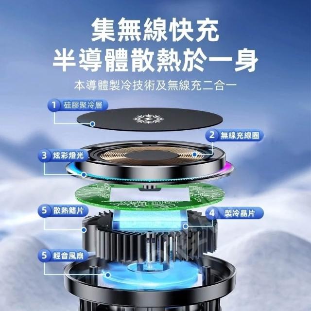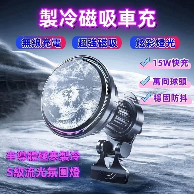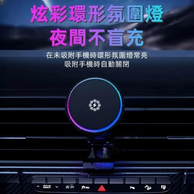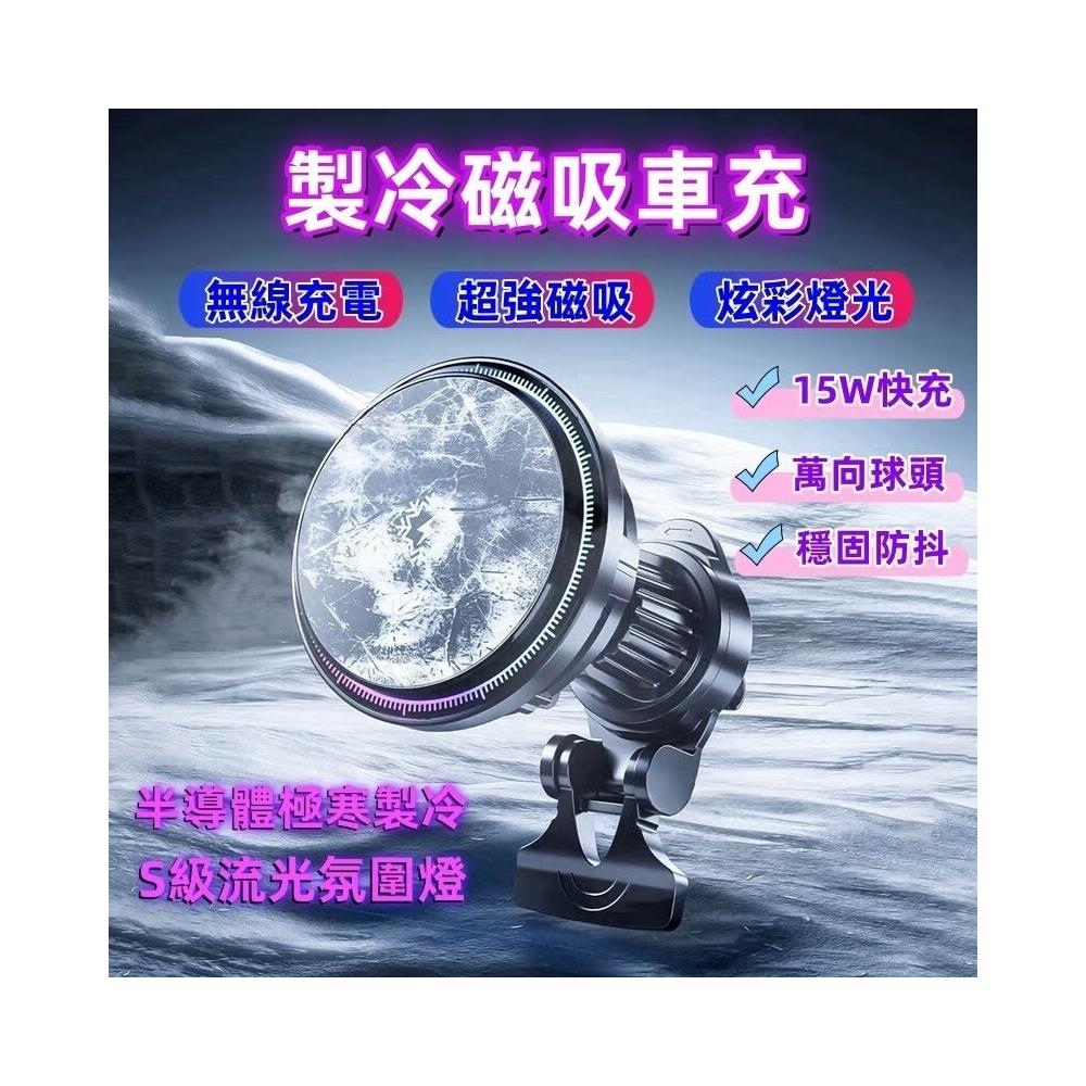 製冷車用磁吸無線充 15W無線快充 磁吸手機架 半導體製冷降溫 車用手機支架 炫彩環繞氛圍燈 車充 無線充電