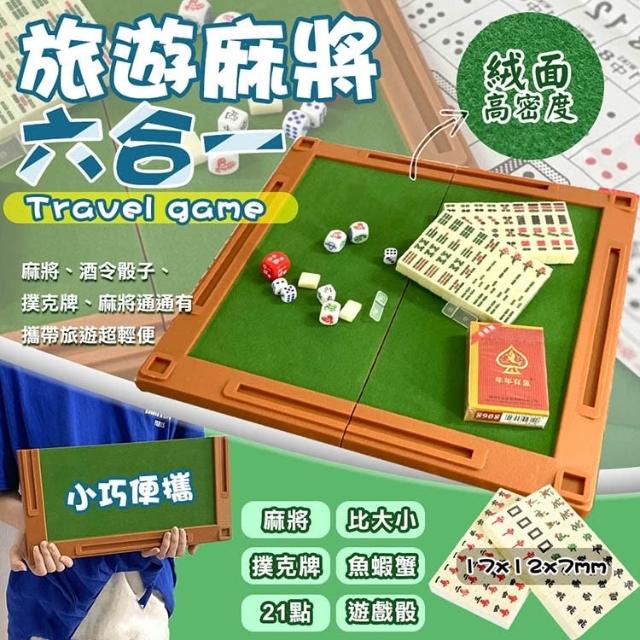 六合一 迷你麻將組 旅行麻將 麻將桌遊 桌遊 小麻將 袖珍麻將 撲克牌 骰子 魚蝦蟹 酒令骰