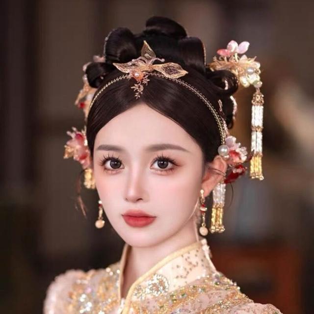 新娘髮飾 新娘頭飾 新娘髮箍 中式新娘古風髮箍結婚飾品 秀禾服中式婚禮大氣鳳冠步搖皇冠