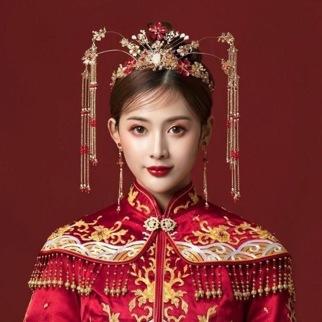 新娘髮飾 新娘頭飾 新娘髮箍 中式新娘古風髮箍結婚飾品 秀禾服中式婚禮大氣鳳冠步搖皇冠