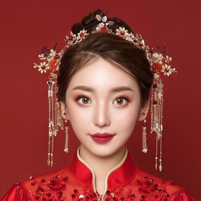 新娘髮飾 新娘頭飾 新娘髮箍 中式新娘古風髮箍結婚飾品 秀禾服中式婚禮大氣鳳冠步搖皇冠