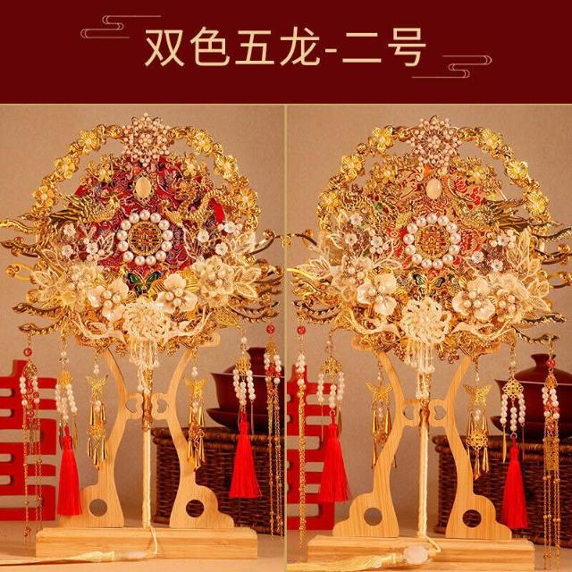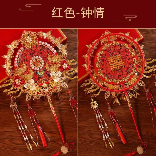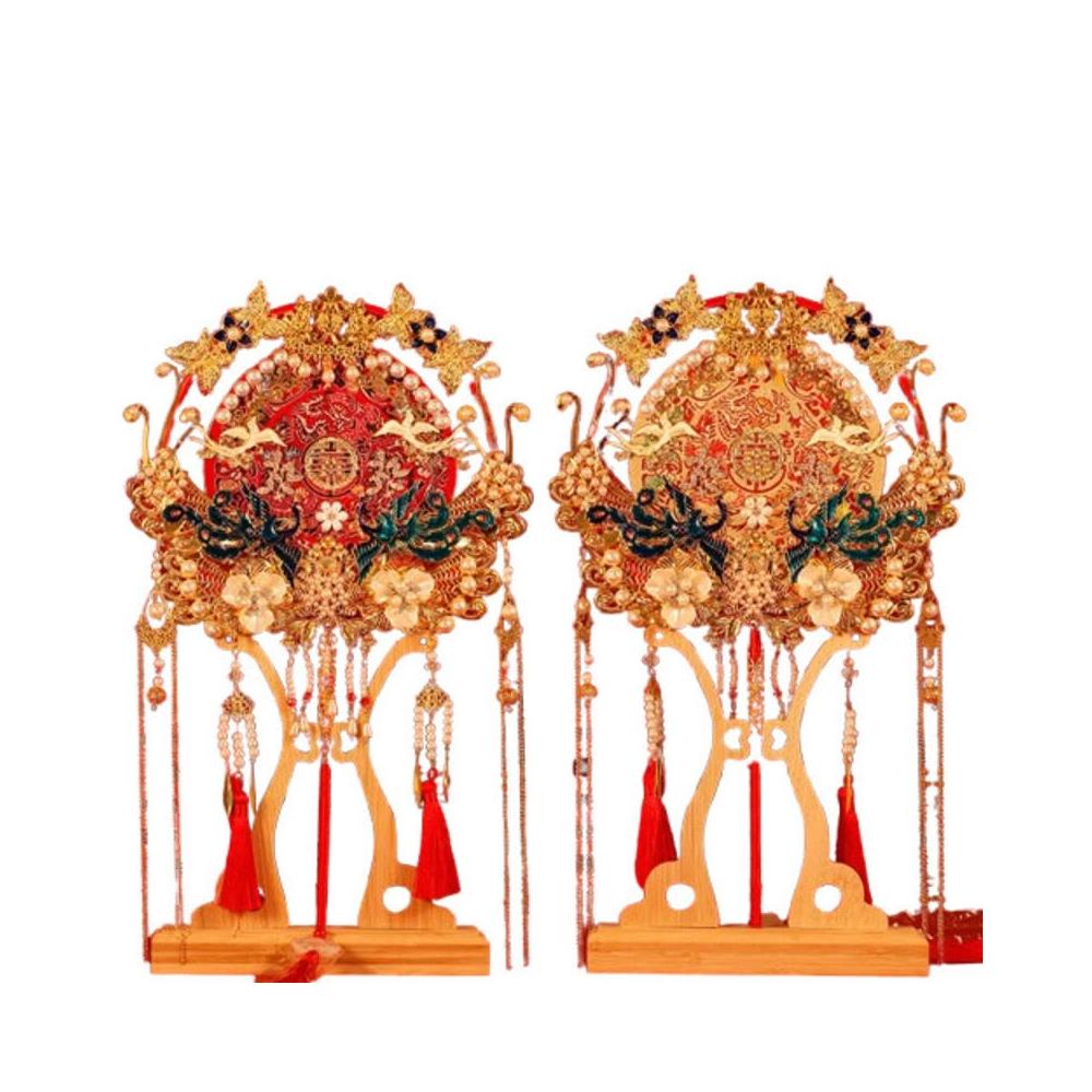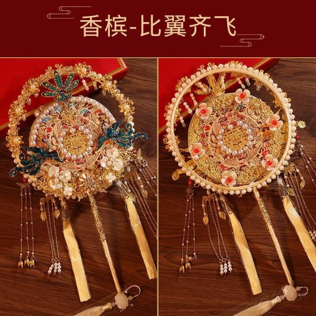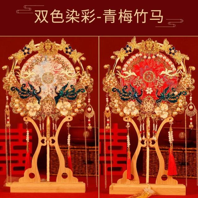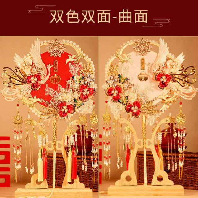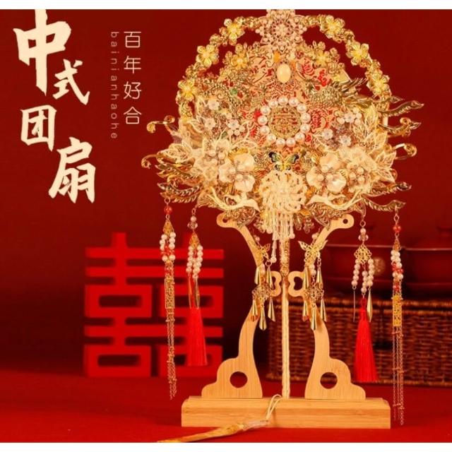 雙面團扇 新娘結婚禮出嫁 高級成品秀禾喜扇 送禮中式扇子 diy材料包