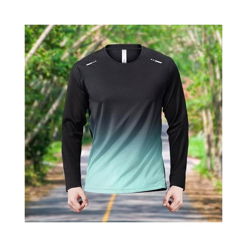 男士長袖運動訓練跑步涼感漸層印花T恤 大碼M-5XL 健身衣服 運動上衣 速乾透氣 長袖排汗衫 晨跑防曬騎行服