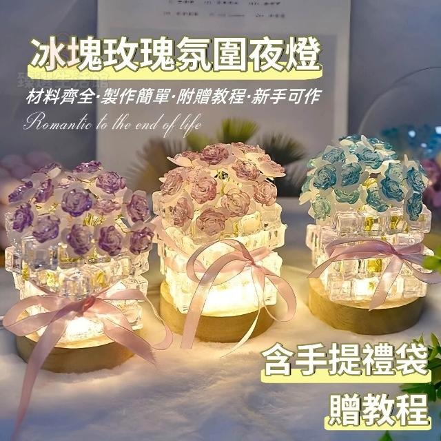 玫瑰花冰塊小夜燈 手工diy材料包 手作小夜燈 不雕謝玫瑰花束 桌面擺件 氛圍燈 冰塊燈 材料包 交換禮物