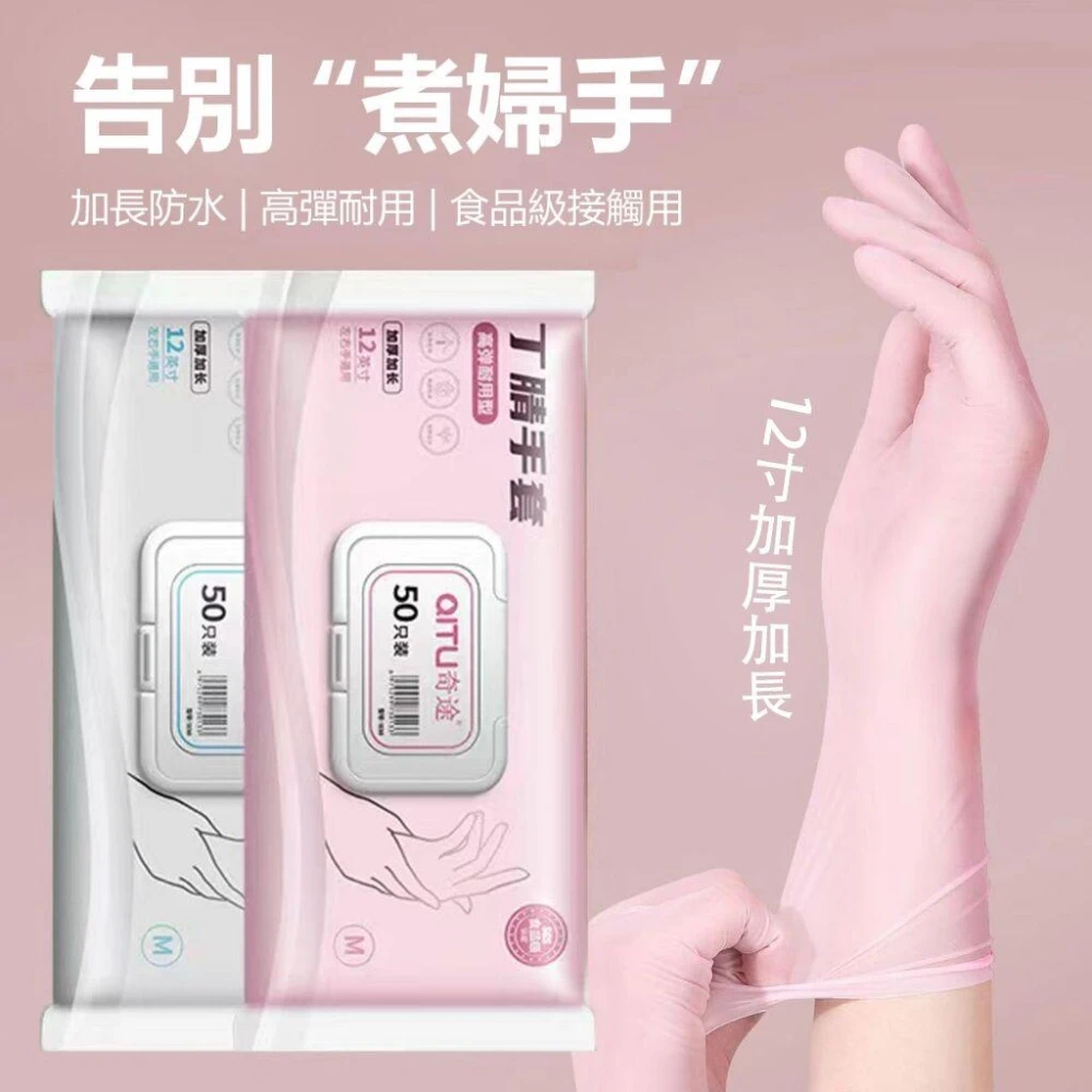 丁腈手套 乳膠手套 加長加厚食品級手套 洗碗手套 防水手套 家事手套 廚房手套 手套