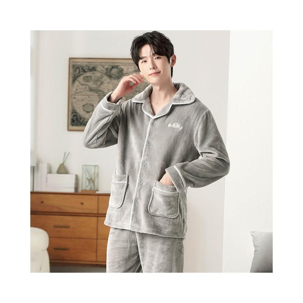 冬季新款男士可外穿睡衣 珊瑚絨睡衣 男士加厚法蘭絨家居服