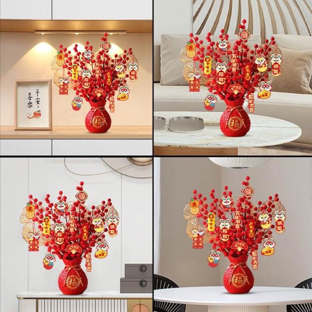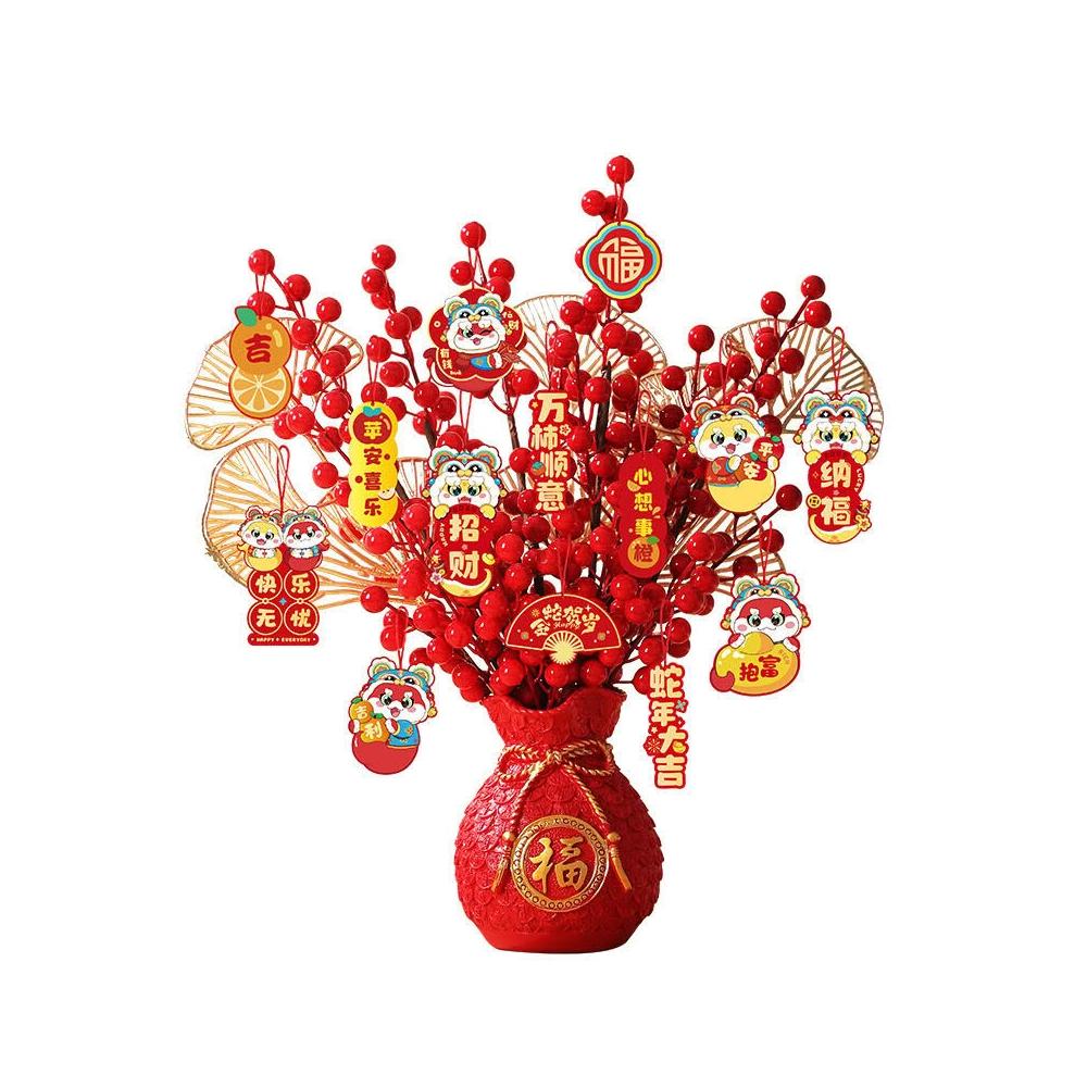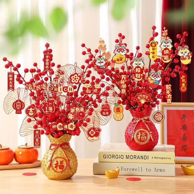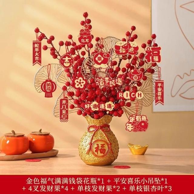 新年福桶擺件 2026新款春節布置裝飾 發財果 客廳酒櫃過年裝飾品