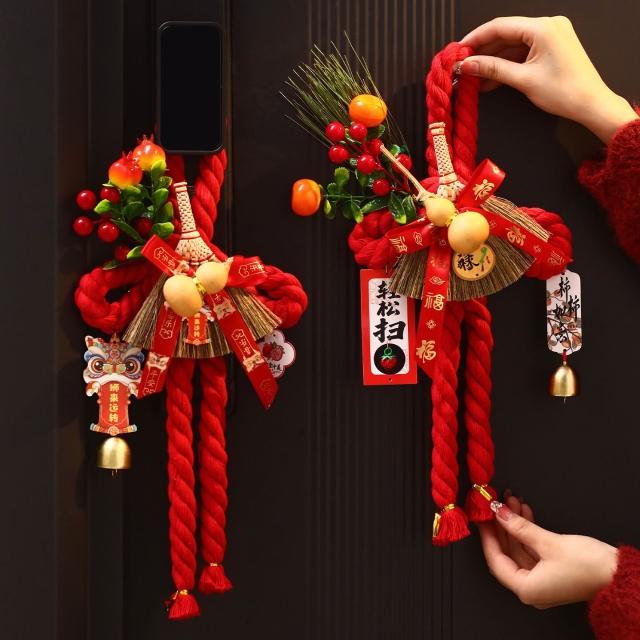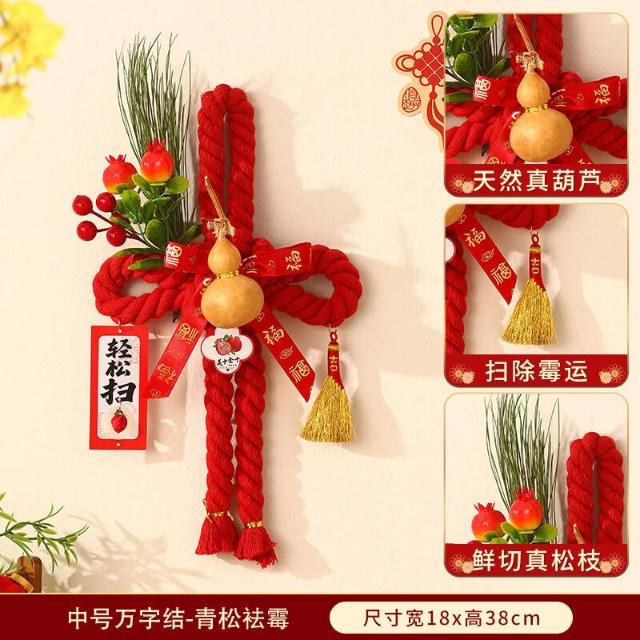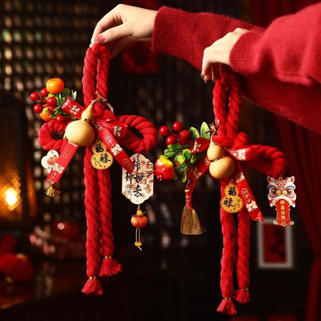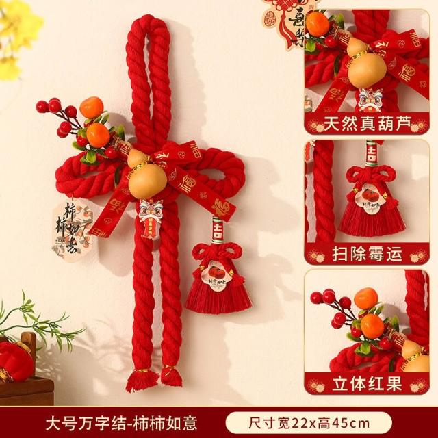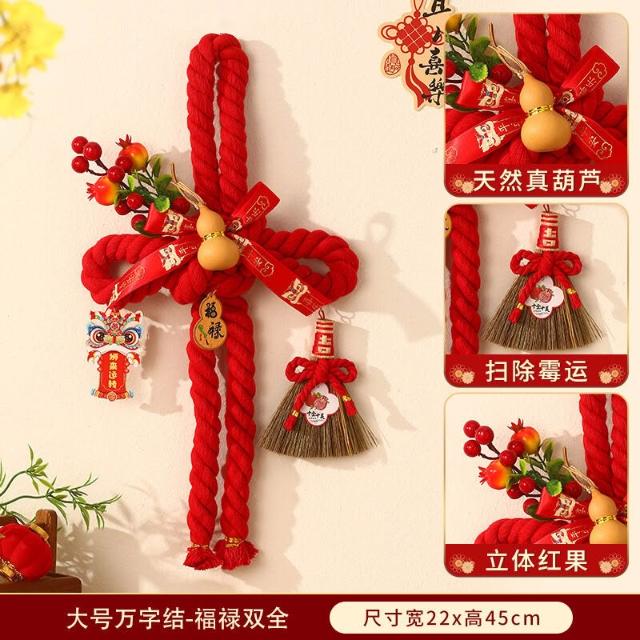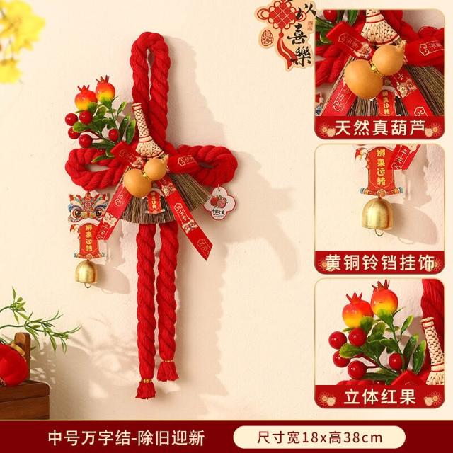 新年萬字結掛件 2026新款春節室內場景布置 裝飾過年 入戶門把手掛飾