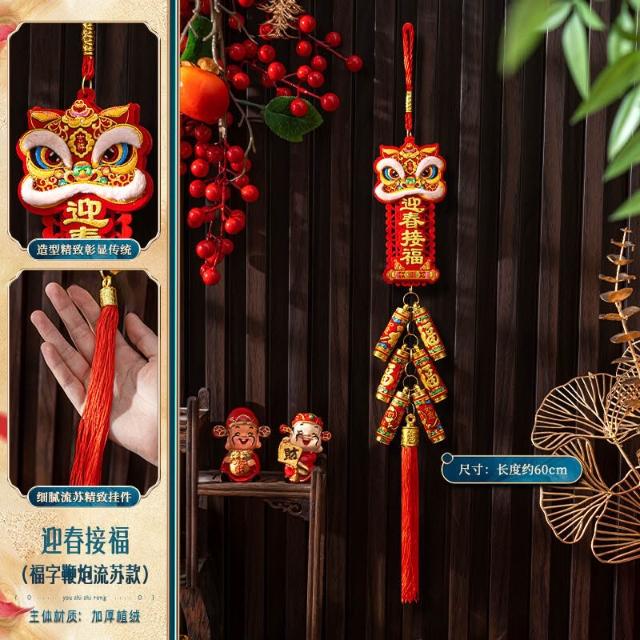 新年裝飾入戶門掛件 門掛鞭炮串 醒獅掛件 春節喬遷喜慶布置