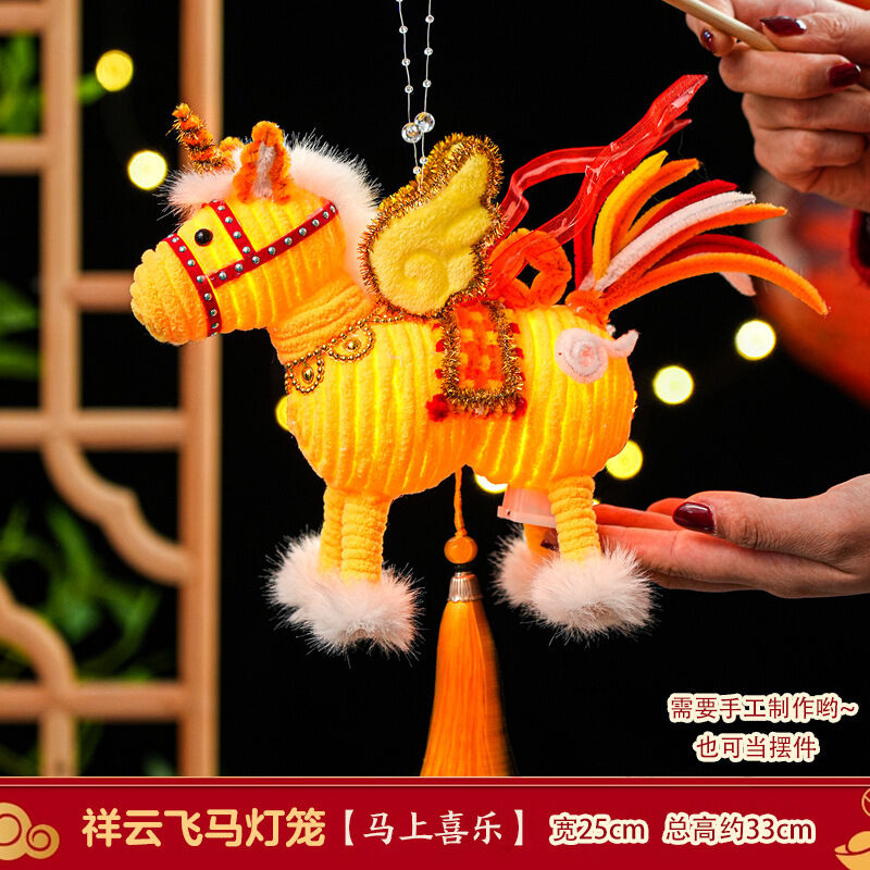 2026馬年新年祥雲飛馬燈籠 過年手工diy材料 春節手提發光花燈