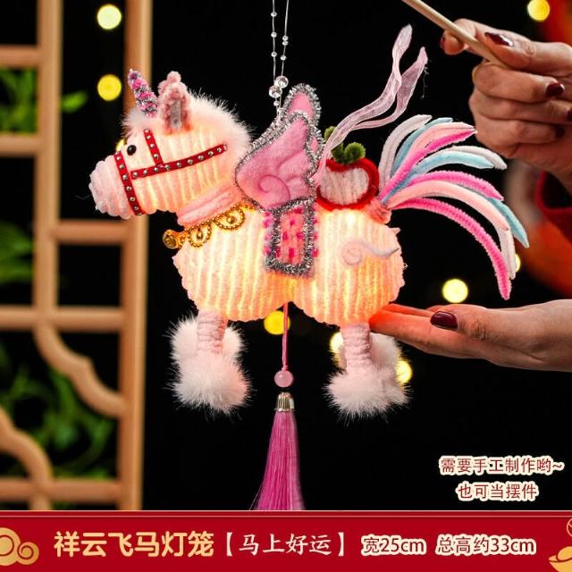 2026馬年新年祥雲飛馬燈籠 過年手工diy材料 春節手提發光花燈