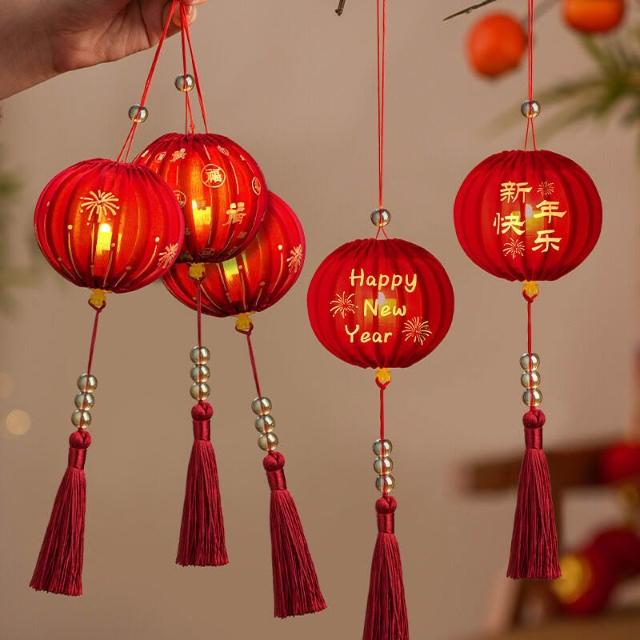2026馬年新款DIY布藝小燈籠 發光款 卡通手提燈籠 漢服拍照花燈