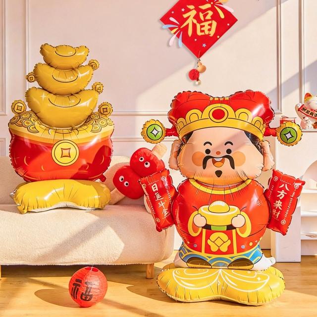 2026馬年新年財神爺發財樹氣球 元旦商場裝飾 公司年會裝飾布置氣球