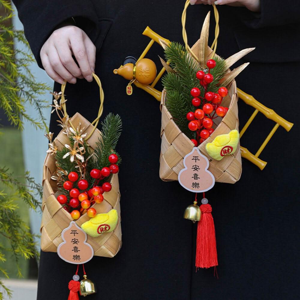 2026新年馬年新款竹編竹簍 春節小掛件 客廳裝飾氛圍感布置喜慶
