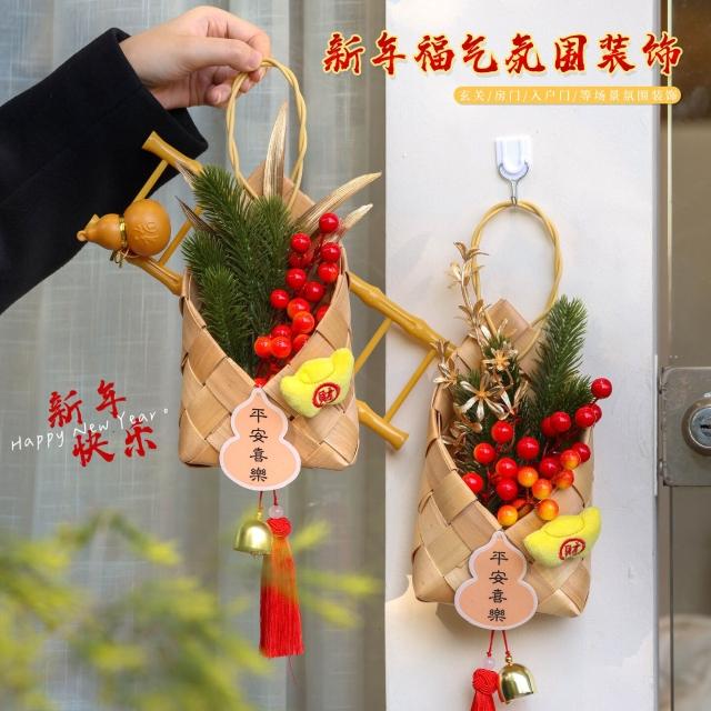 2026新年馬年新款竹編竹簍 春節小掛件 客廳裝飾氛圍感布置喜慶