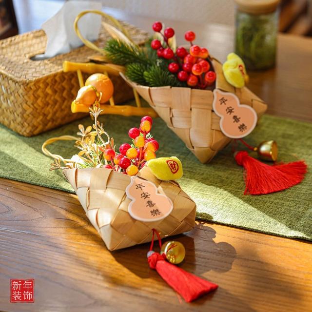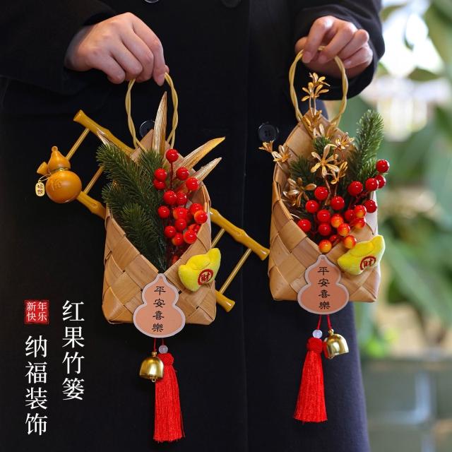 2026新年馬年新款竹編竹簍 春節小掛件 客廳裝飾氛圍感布置喜慶