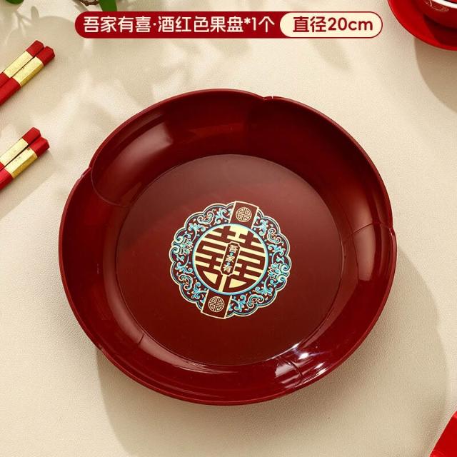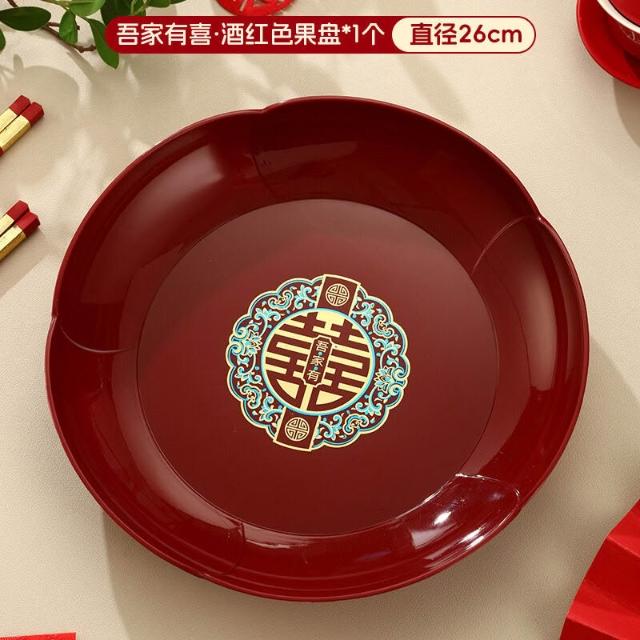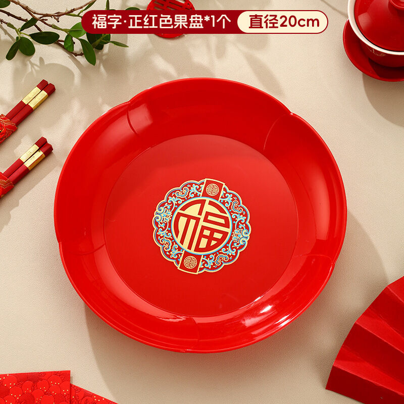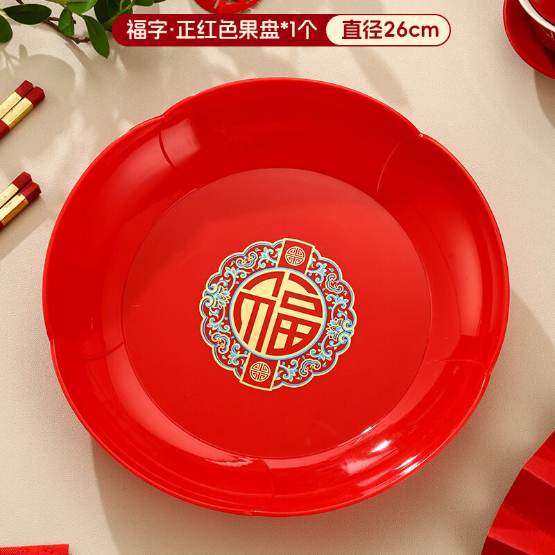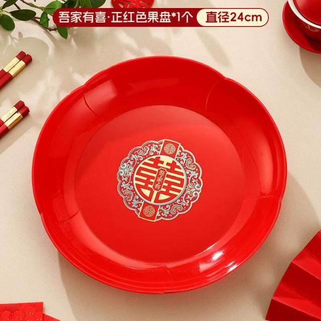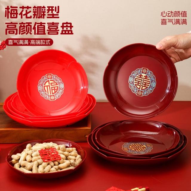 喜盤梅花瓣 加大加厚新年紅盤 果盤 多規格供盤 囍糖收納盒 訂婚幹果盤