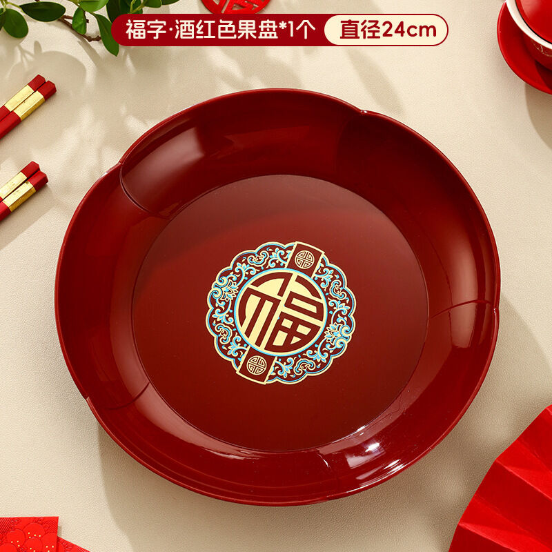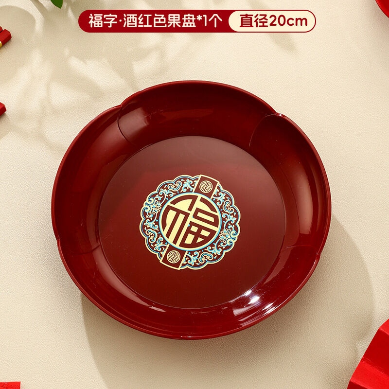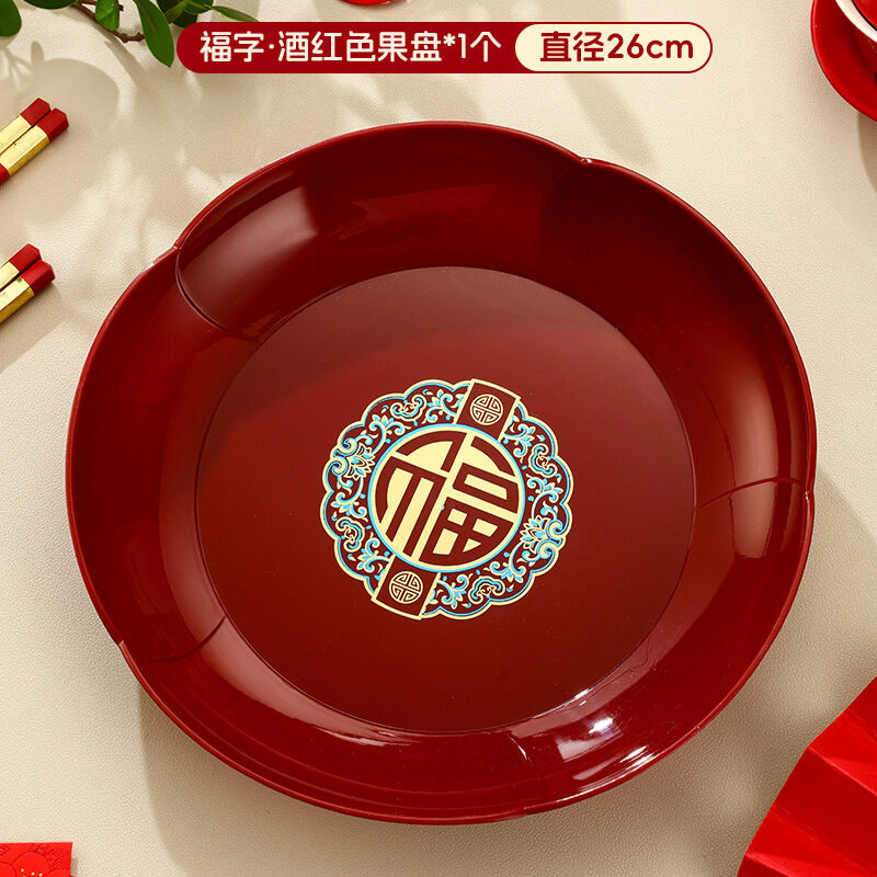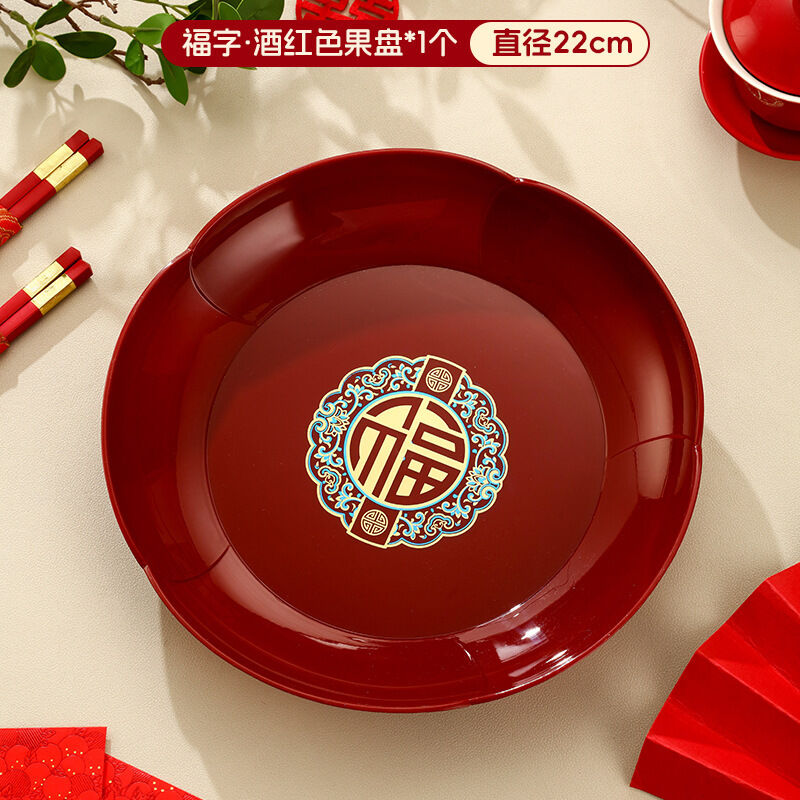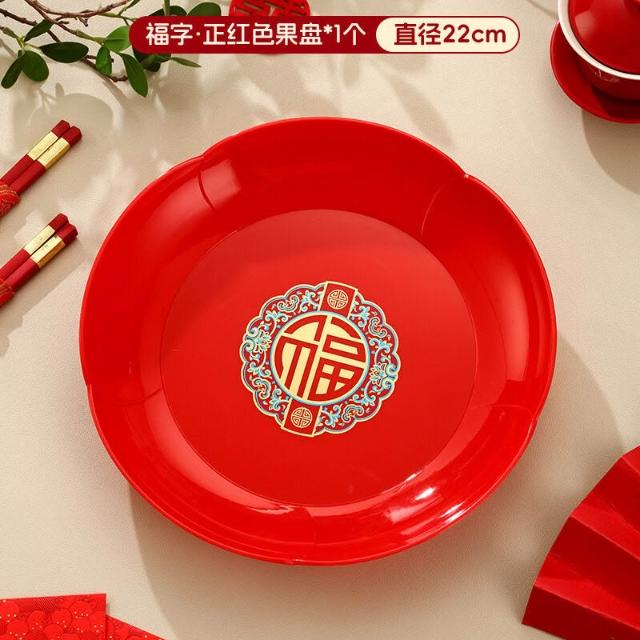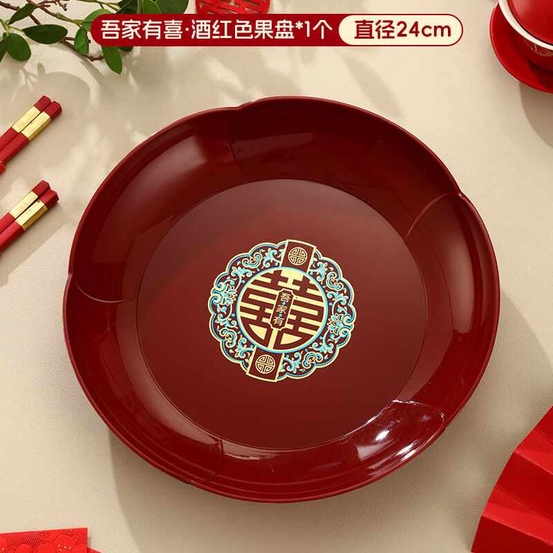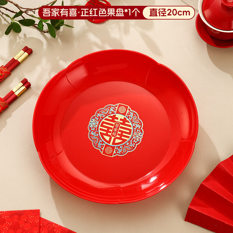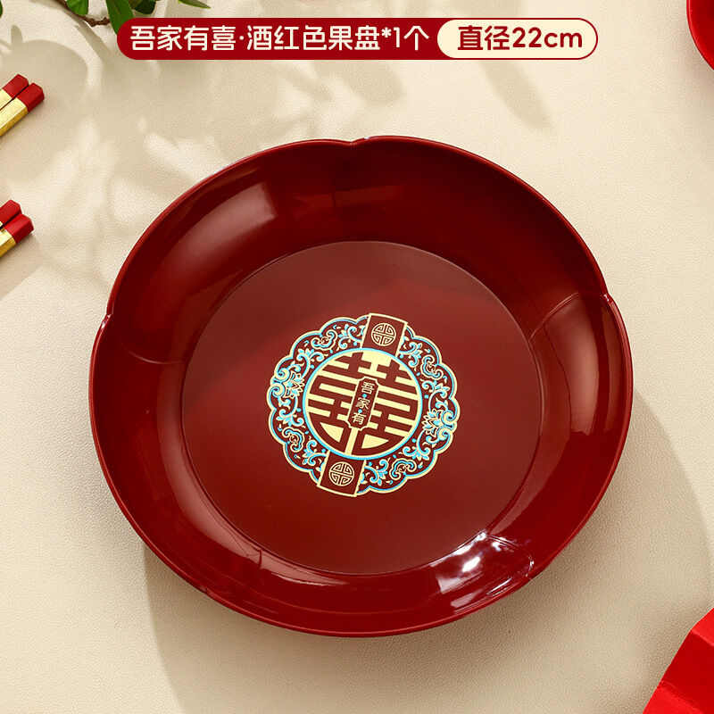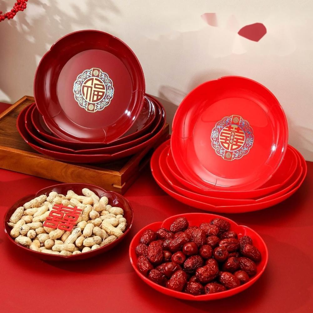 喜盤梅花瓣 加大加厚新年紅盤 果盤 多規格供盤 囍糖收納盒 訂婚幹果盤