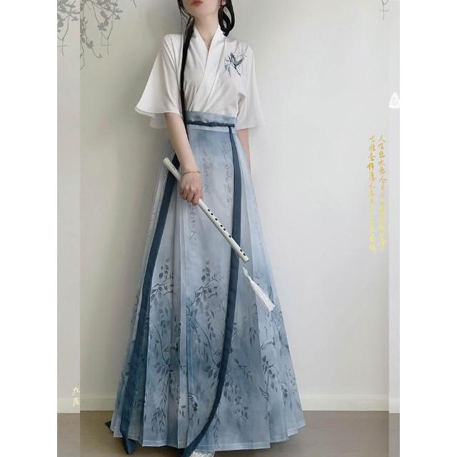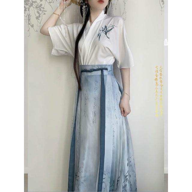 漢服女 仙羽 飛機袖 馬面裙 改良漢服 新中式服飾 夏天套裝 日常漢元素 中國風 古風衣服