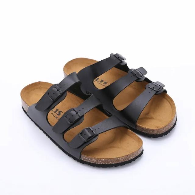 GILIS-台灣製造-勃肯拖-三條拖鞋(男)-吸汗牛皮鞋墊