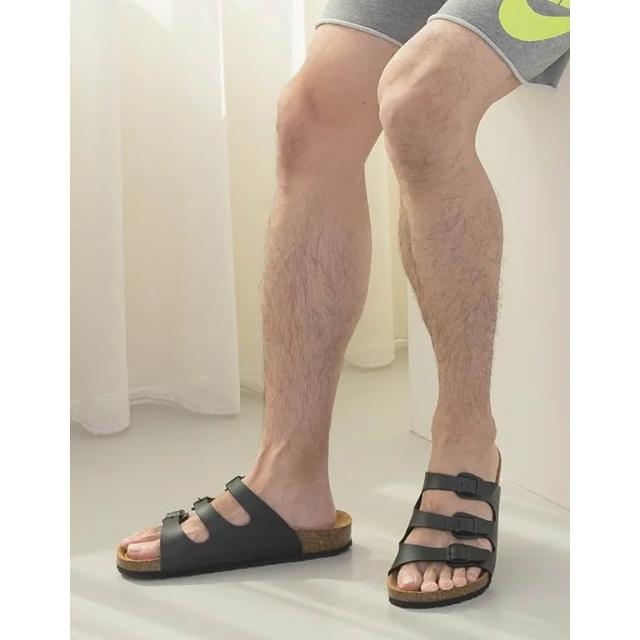 GILIS-台灣製造-勃肯拖-三條拖鞋(男)-吸汗牛皮鞋墊
