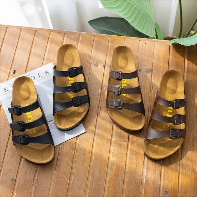 GILIS-台灣製造-勃肯拖-三條拖鞋(男)-吸汗牛皮鞋墊