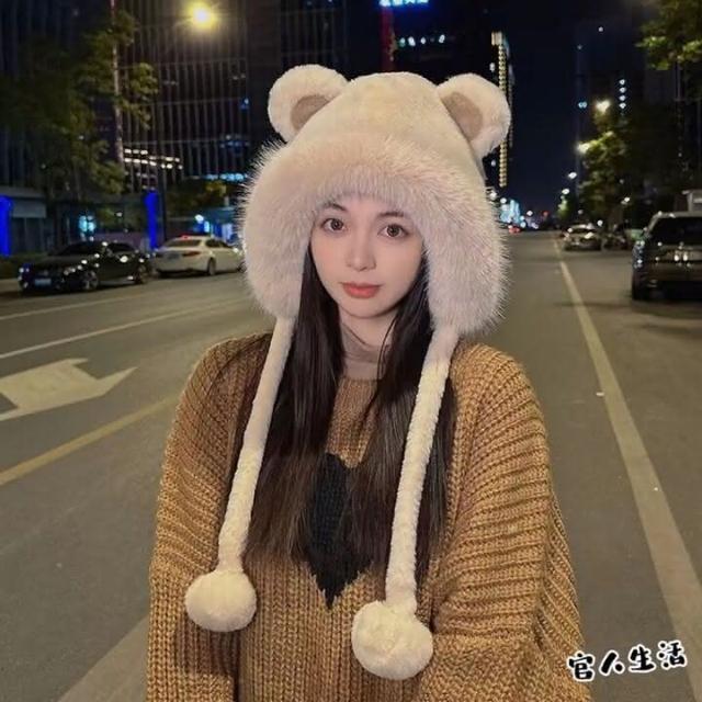 🔥小熊毛絨帽🔥 MHB01 親膚保暖 保暖帽 毛球帽 內絨 毛帽 球球毛帽 秋冬毛帽 雙面毛絨帽 小熊帽 球球帽