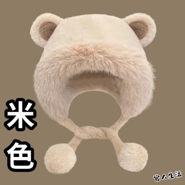 🔥小熊毛絨帽🔥 MHB01 親膚保暖 保暖帽 毛球帽 內絨 毛帽 球球毛帽 秋冬毛帽 雙面毛絨帽 小熊帽 球球帽
