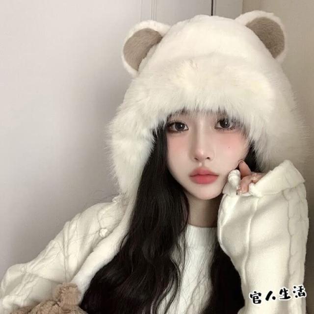 🔥小熊毛絨帽🔥 MHB01 親膚保暖 保暖帽 毛球帽 內絨 毛帽 球球毛帽 秋冬毛帽 雙面毛絨帽 小熊帽 球球帽